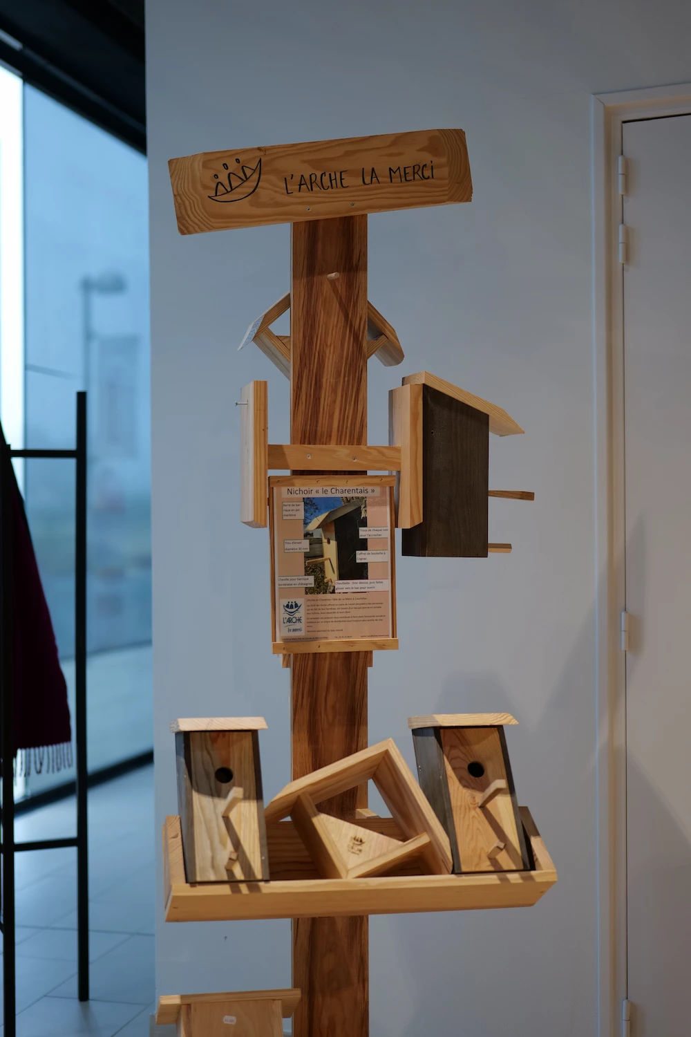 Le jour de l’inauguration de cet espace dédié à L’Arche, toutes les personnes présentes ont été joyeusement invitées par Marie-Christine et Antoine, magnifiques ambassadeurs de L’ESAT, à prendre place autour d’un très bel « Arbre à Vœux » fabriqué en douelles de barriques par les artisans de l’ESAT. Chacune et chacun a alors pu écrire un vœu, déposé ensuite sur une branche de l’arbre. Un moment émouvant et chaleureux, clôturé par la remise d’un chèque de Courvoisier, en soutien des projets de l’atelier Bois de La Merci.